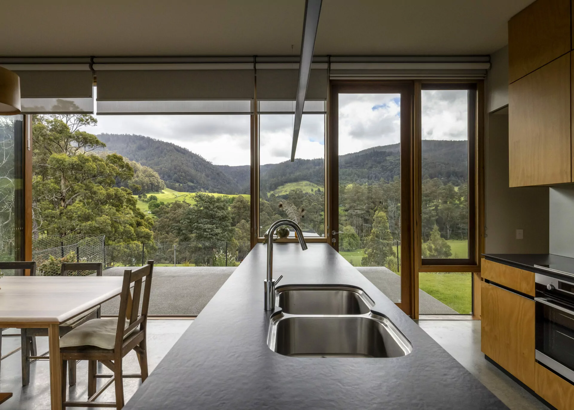 Crabtree is an inviting home built within the lush paddocks of Southern Tasmania. Bright, open spaces are framed by expansive windows, drawing the surrounding greenery indoors. Beautiful timber features are used throughout, paired with considered, functional storage to create a home that feels both refined and deeply connected to its landscape.