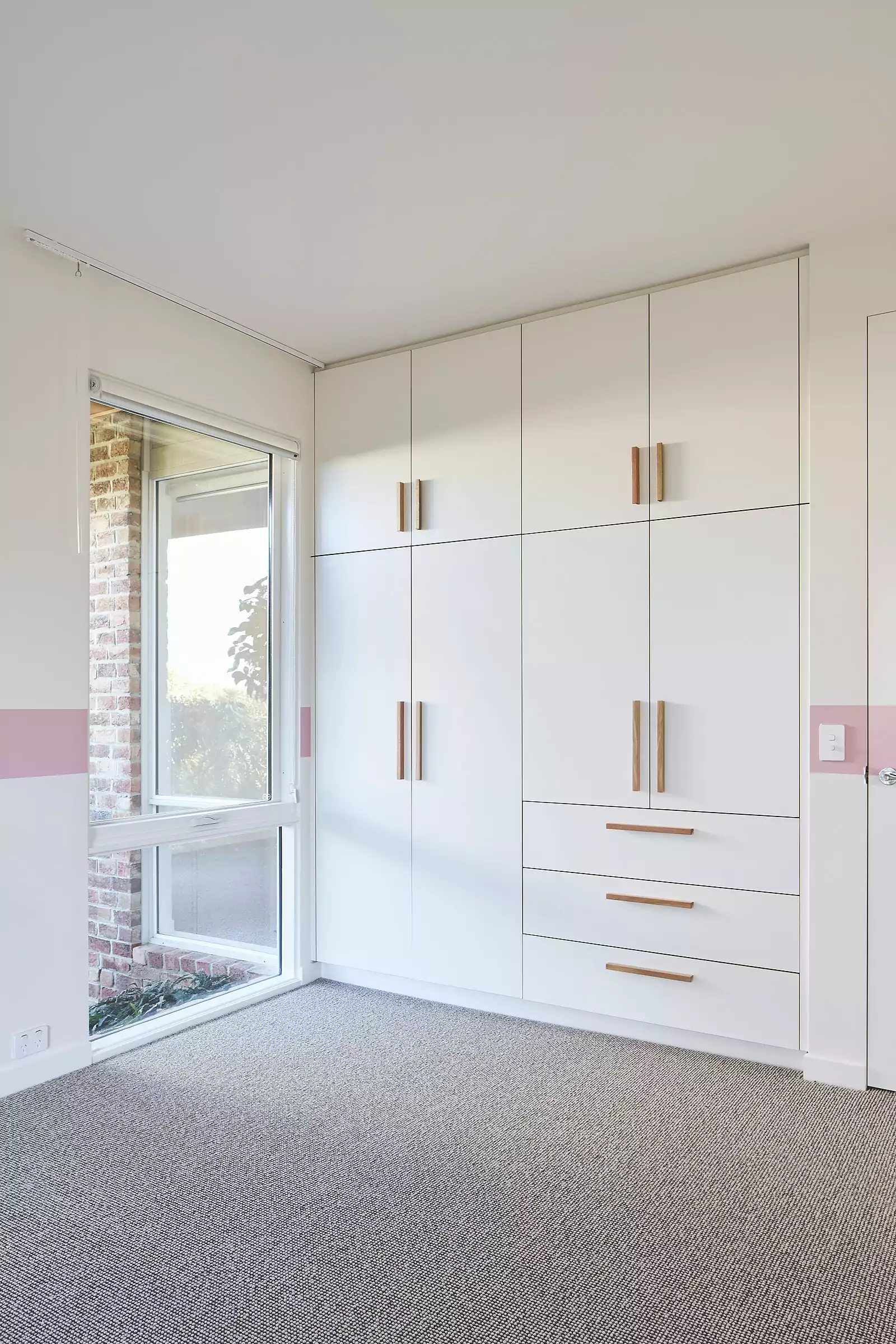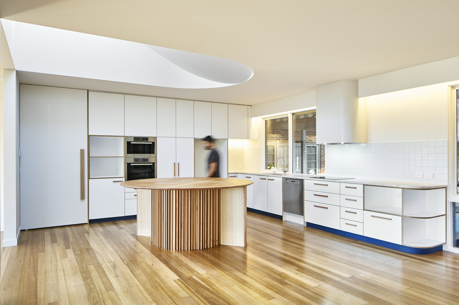 Mawhera Avenue is a renovation project featuring a new kitchen space and cabinetry updates across the house. The design elements from the kitchen drawn through to the bedrooms in a clever update. The statement custom timber island and feature skylight working beautifully together to lighten and ground the space all in one.